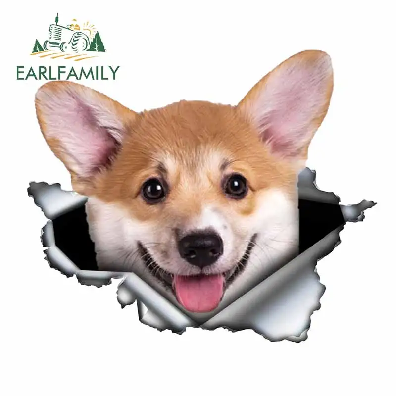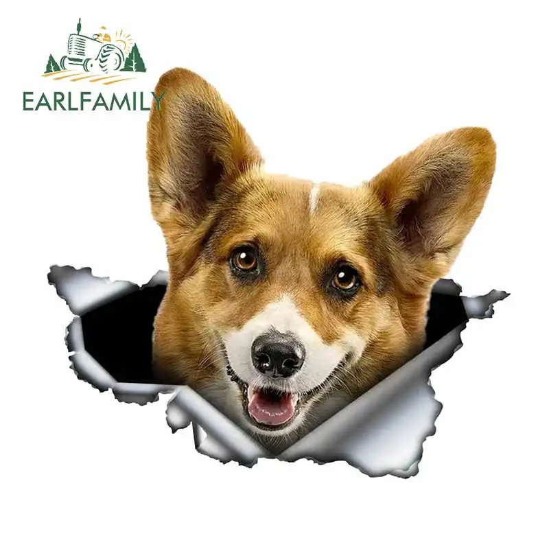 EARLFAMILY Автомобильная наклейка валлийский корги пемброк 3D оригинальный рваный металлический дизайн виниловая наклейка на заказ забавная собака своими руками креативная наклейка s