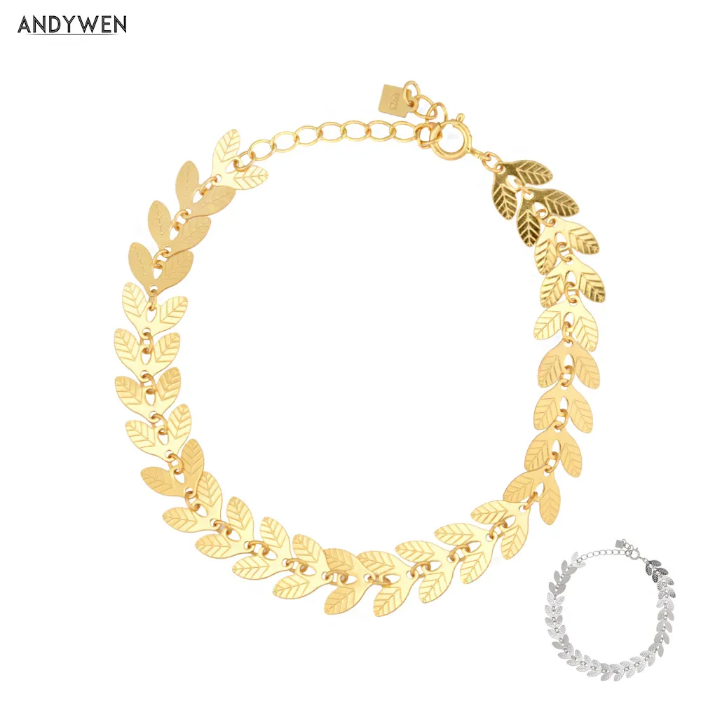 Женский браслет с листьями и кристаллами ANDYWEN, из стерлингового серебра 2021 пробы, Ювелирное Украшение для девушки, подарочное украшение