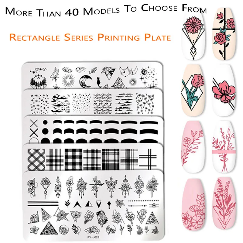 Печатная пластина из нержавеющей стали для дизайна ногтей, синяя пленка, стальная пластина, Геометрическая Цветочная серия, окрашенная фотография, искусственные ногти