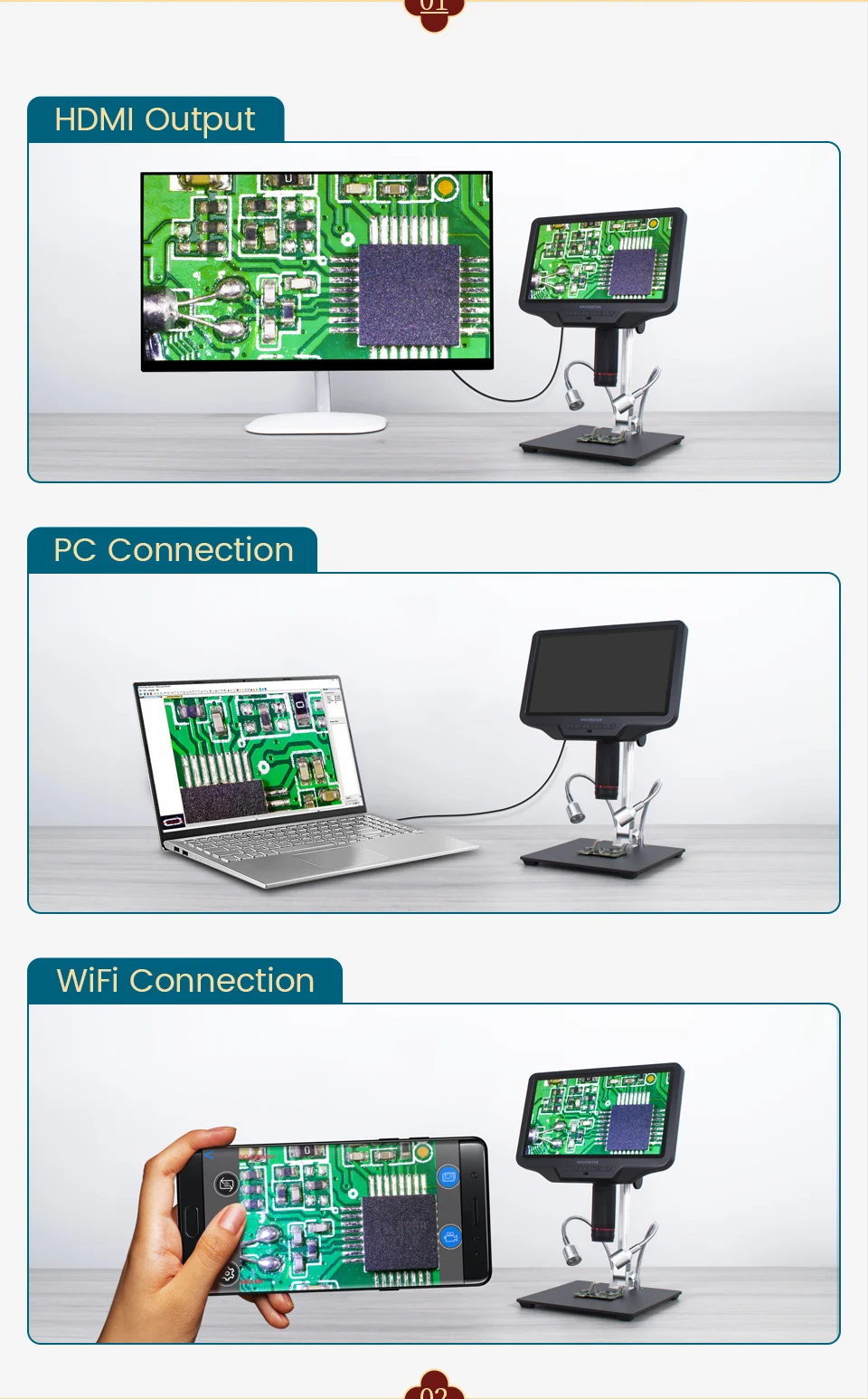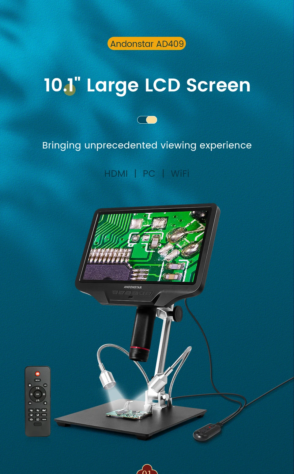 Портативный цифровой микроскоп Andonstar AD409, 10,1 дюйма, 1080P, HDMIUSB, для пайки, PCB, SMD, электроники, телефонов, инструменты для ремонта