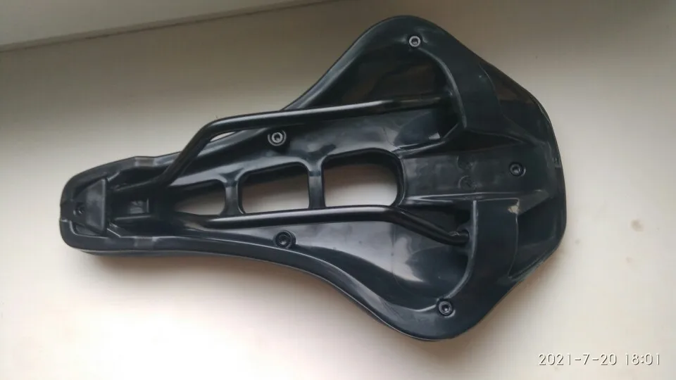 Укороченное нарочито взял, по ширине чуть уже не нашёл, зато пластиковый бортик сзади спасёт от драни дерматина грузом на багажнике. Под весом седока от 70 и выше уверен, лопнут перемычки основы. Проминается визуально средняя часть. По картинке более покатый скос задней части, реалия иная. Не зайдёт, если жопа требует сидушку 135 мм. В принципе, кто в теме на ширпотреб эдакий не взглянет.