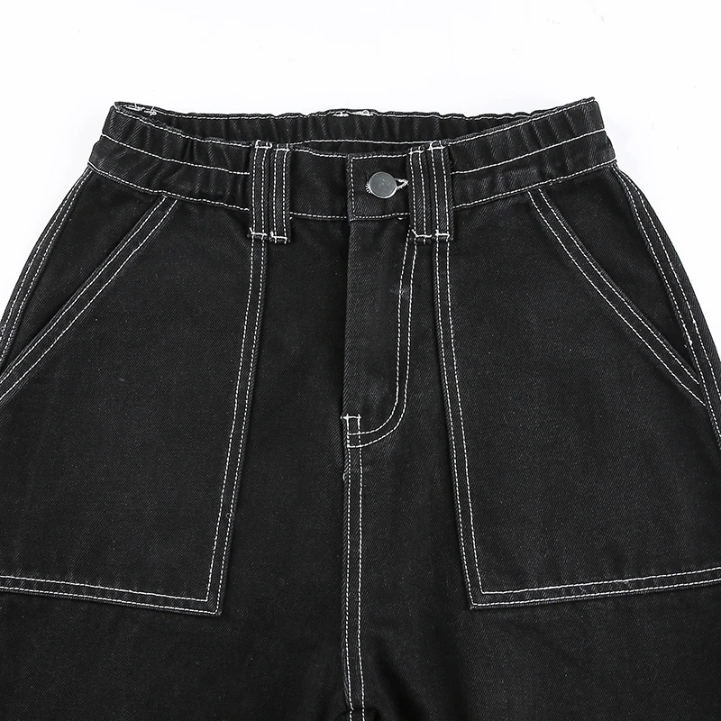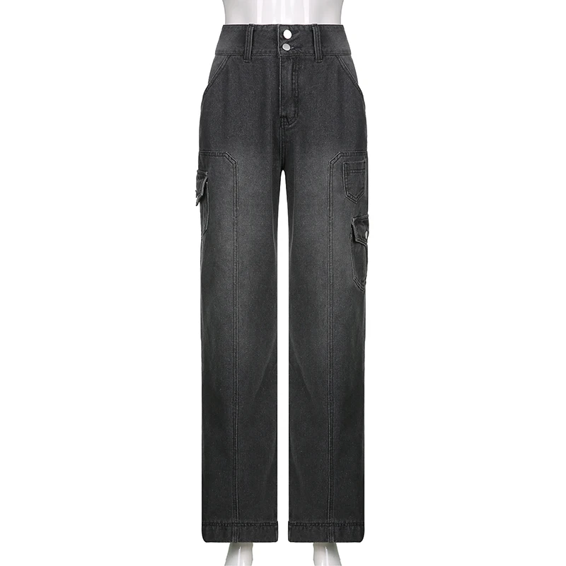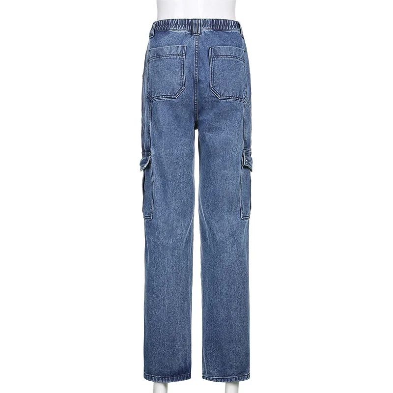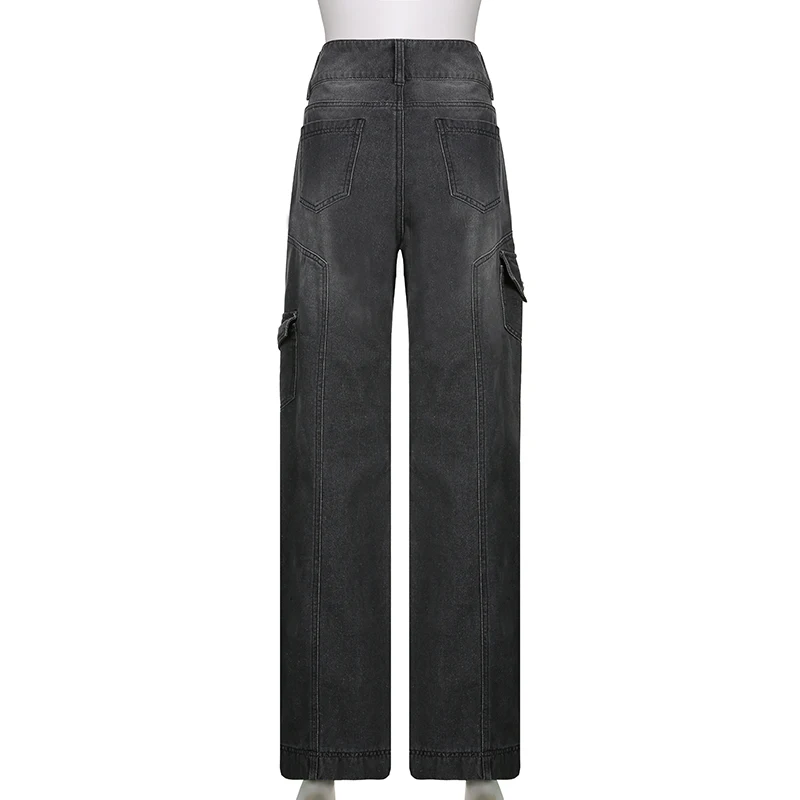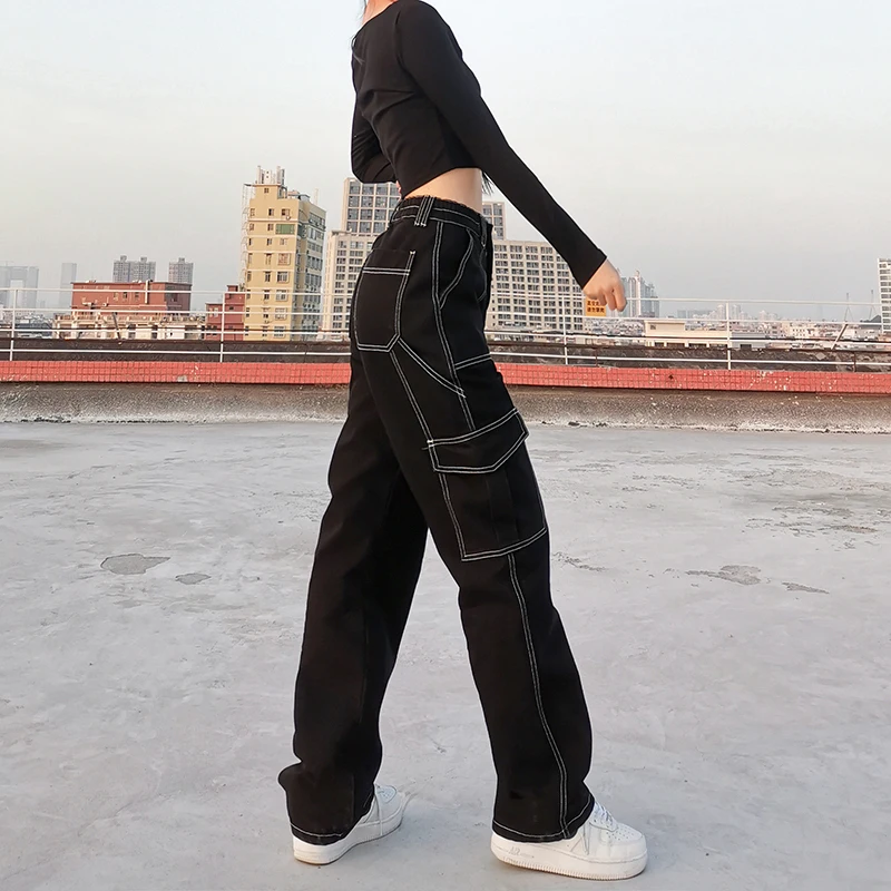 WeekeepЛоскутные мешковатые джинсы с карманами; Модная уличная одежда из 100% хлопка; Женские джинсовые брюки; Свободные брюки-карго; Корейские джинсы в стиле Харадзюку