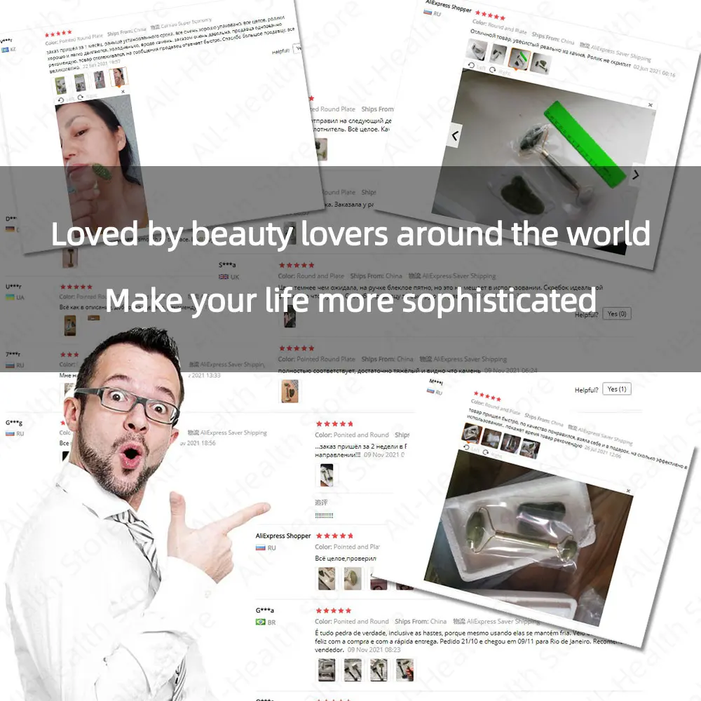 Excellent quality. True jade. Heavy and cold to touch. Very pleasant feeling when using. Very fast delivery, only 20 days to Belarus! Very fast. Packaged securely. Thank you very much to the seller. Five Stars! If I could put 10 stars, I would definitely put 10 stars!