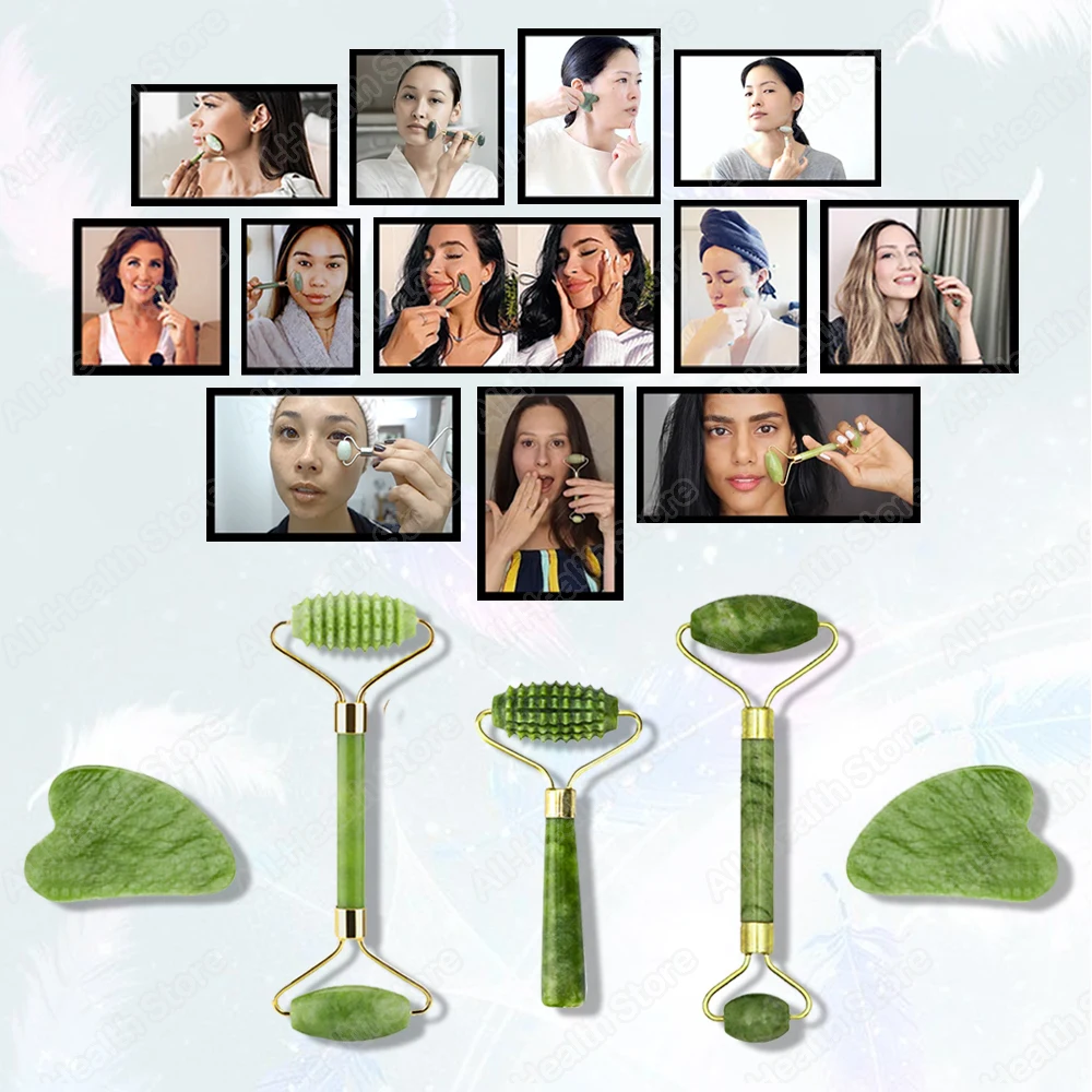 Натуральный массажер для лица, гуашь, скребок для лица, массажер для лица, Нефритовый ролик, гуаша, скребок для лица, микроидный ролик для лица гуаша