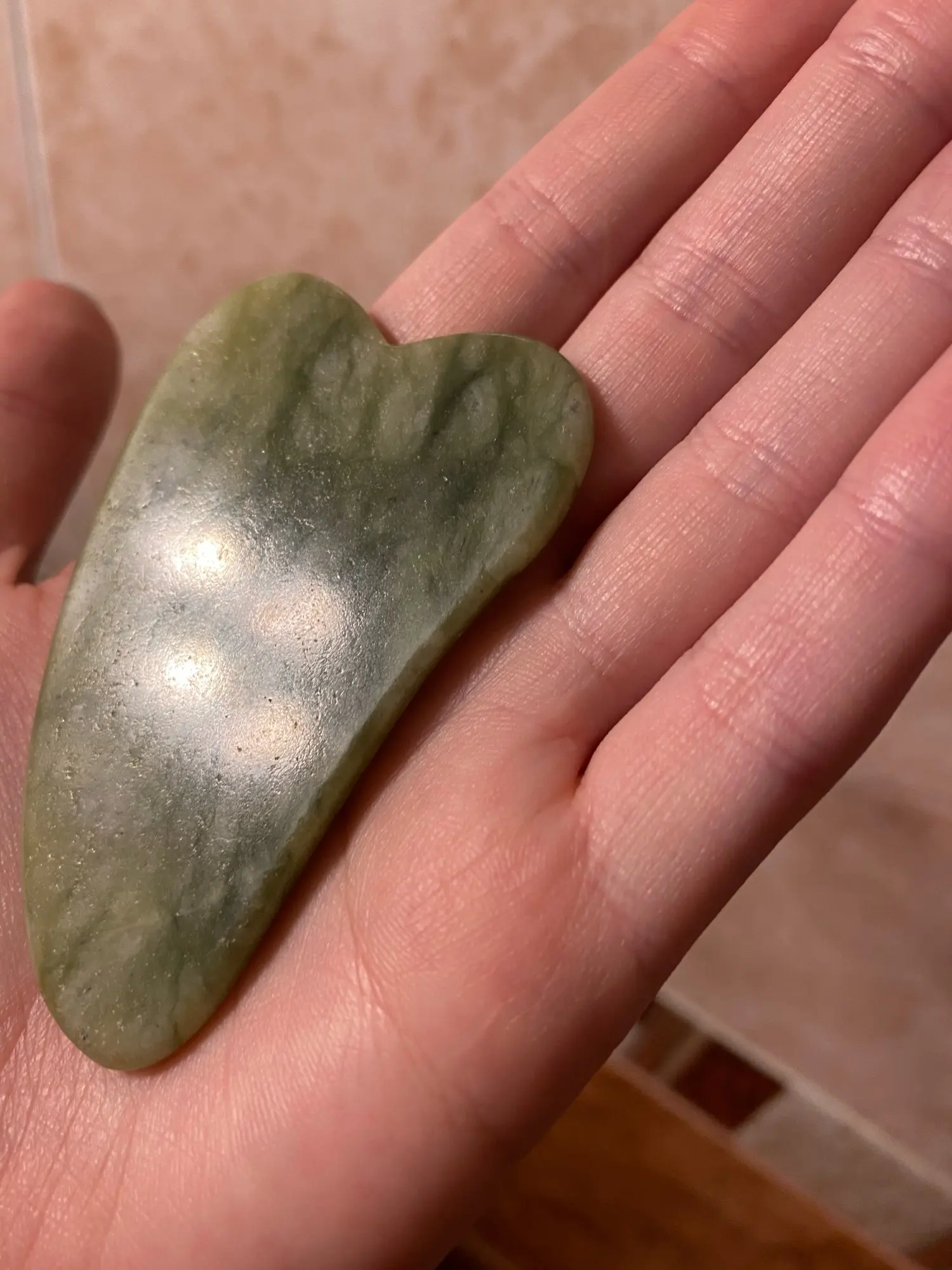 Пришла посылка в целости. Натуральный камень . Пользуюсь уже почти неделю . Кладу его в холодильник и утром наношу сыворотку на лицо , а потом беру его из холодильника и массирую лицо . Таким образом суперски быстро сходят отеки с лица ! И просто и эффективно , мне нравится !