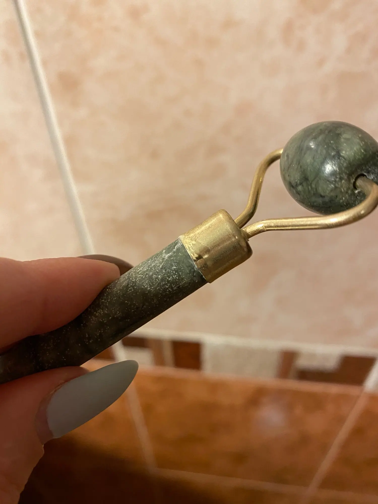 Массажер по внешнему виду довольно качественный и прочный, внешне напоминает натуральный нефритовый камень. Товаром доволен.Думал долго получать, но доставка очень быстрая, рекомендую , спасибо продавцу