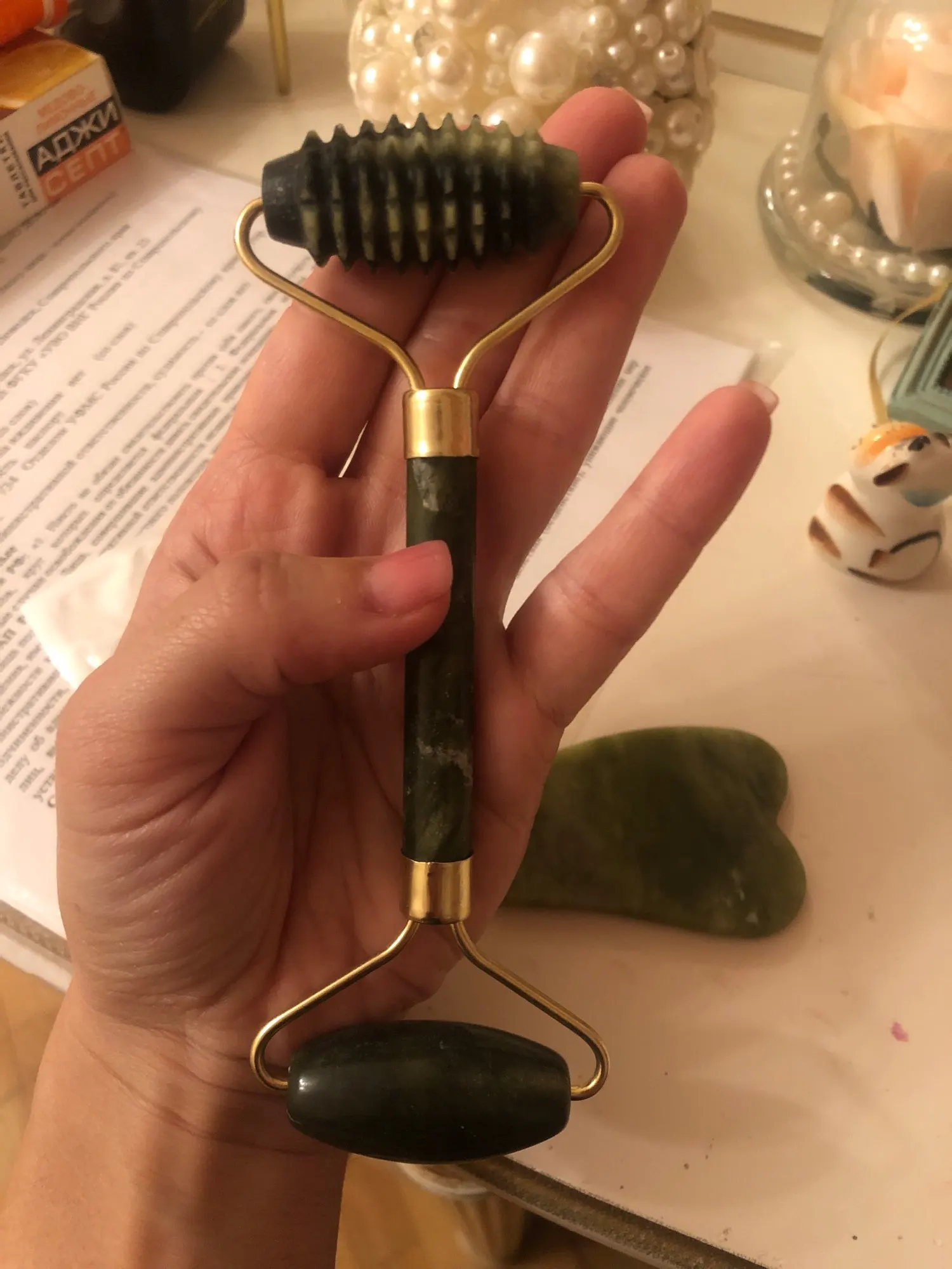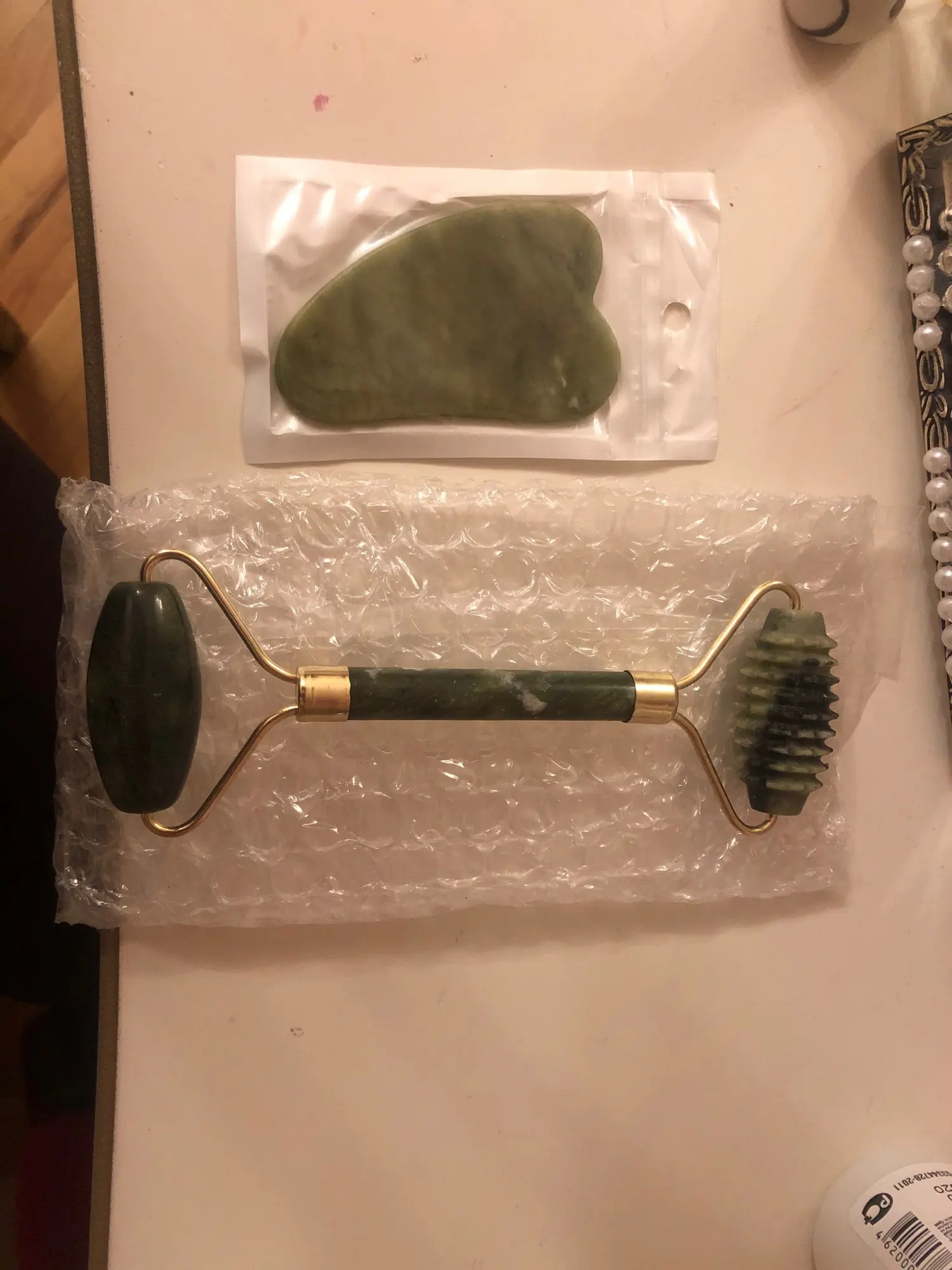 100% хорошо! Быстрая доставка, отличная упаковка, все прибыло в хорошем состоянии, никаких трещин. Натуральный камень, очень приятные ощущения. Я доволен своим заказом! Нефритовый ролик и guasha оба очень хороши для кожи спасибо, дорогой продавец!