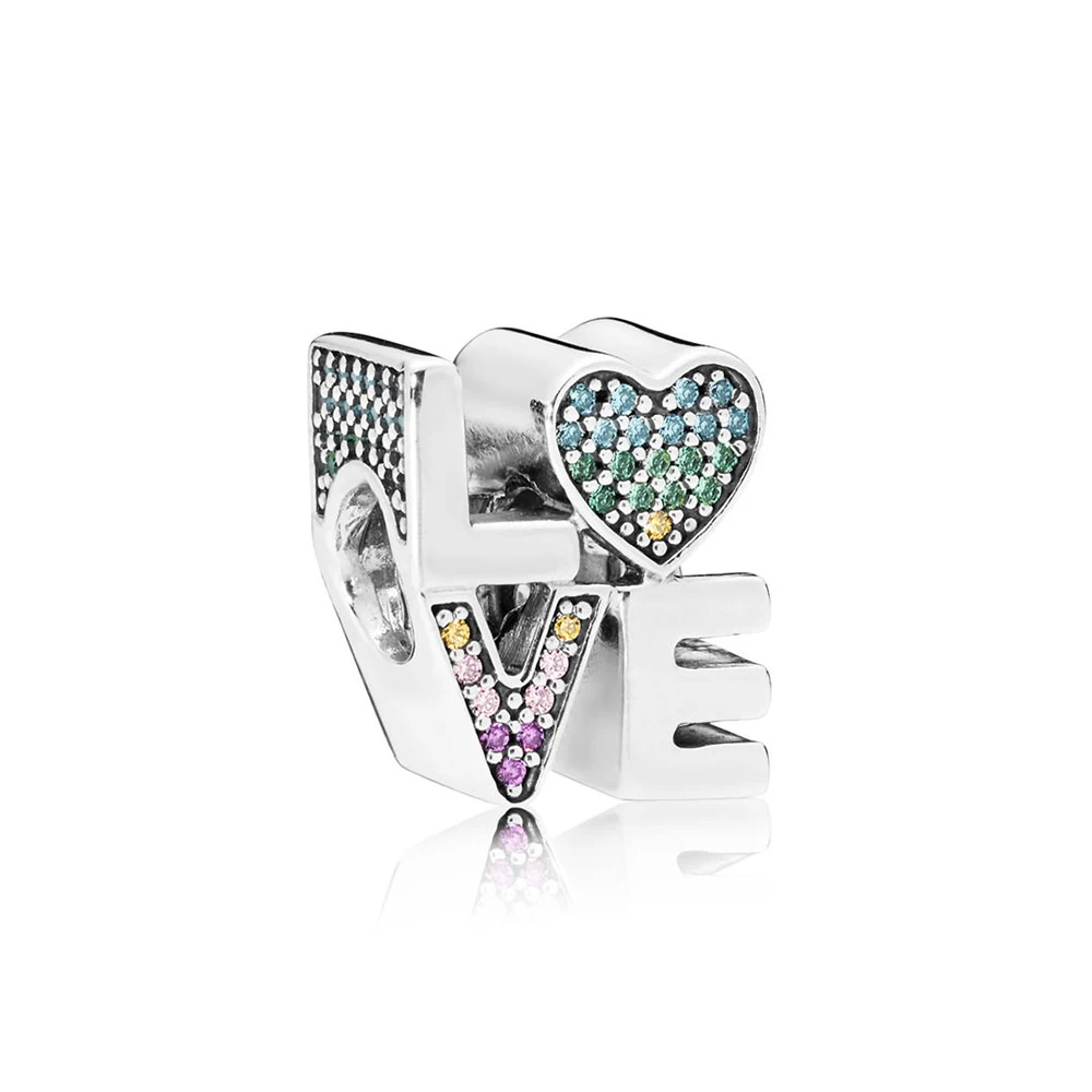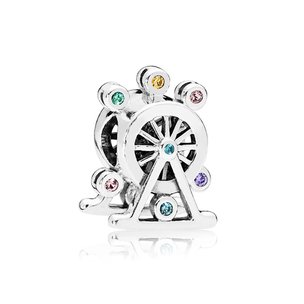 100% 925 пробы серебряные очаровательные бусины, разноцветное колесо обозрения, игра, яркая форма сердца, любовь, пить радугу