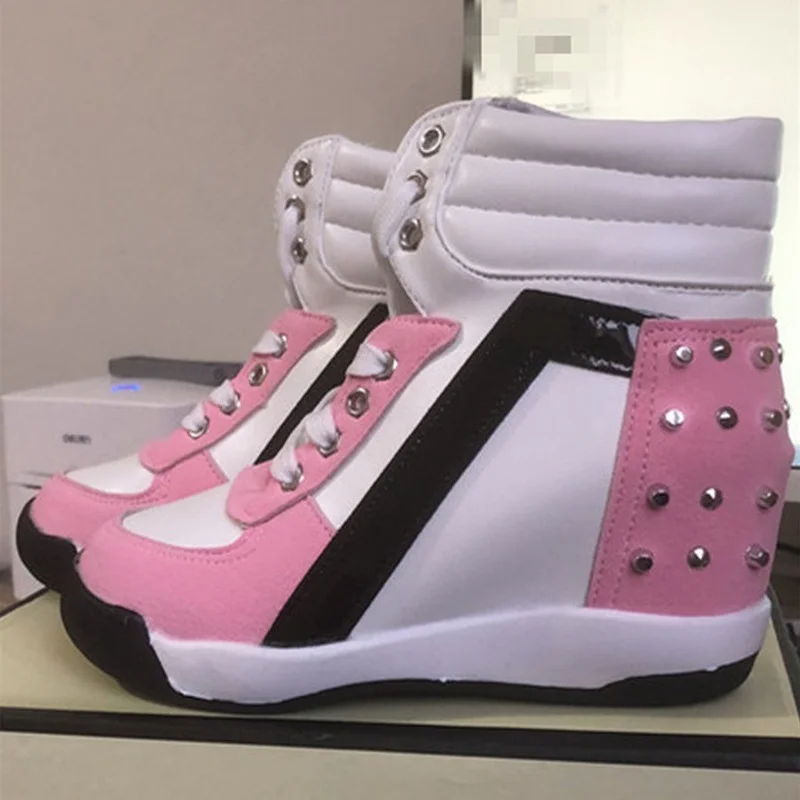 Женские кроссовки с заклепками, повседневная обувь на платформе, высокие, танкетка, модные