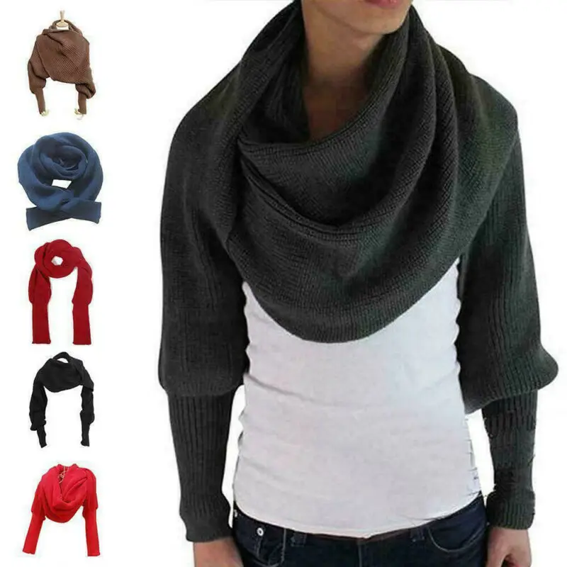 Женский вязаный свитер, топы, теплый вязаный шарф с рукавом, накидка, шаль, шарфы, лидер продаж