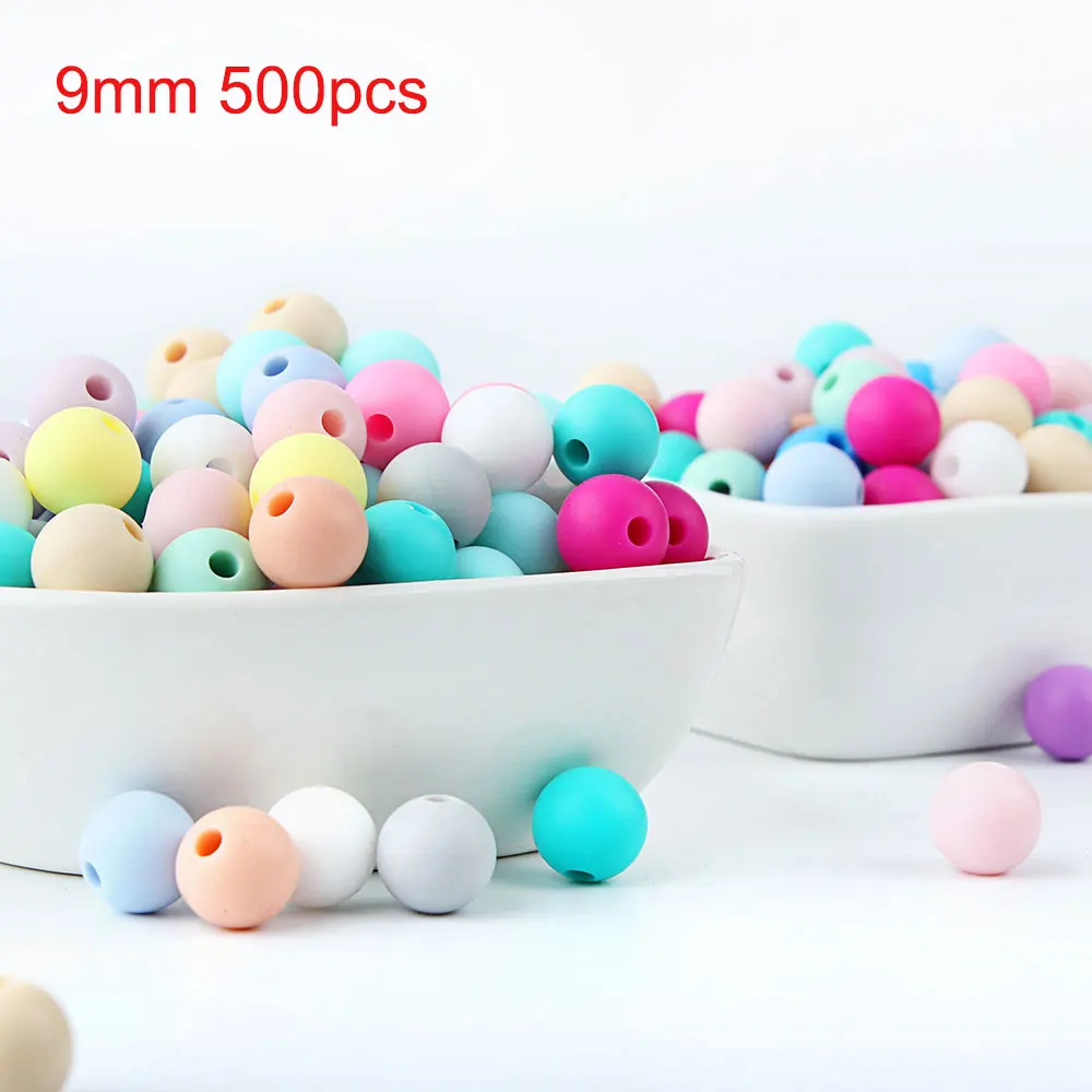 500 шт. Силиконовые Бусины 9 мм, детские игрушки, поделки для прорезывания зубов, жевательные укусы, сенсорные Круглые бусины для погремушки, детский Прорезыватель для зубов, жемчуг