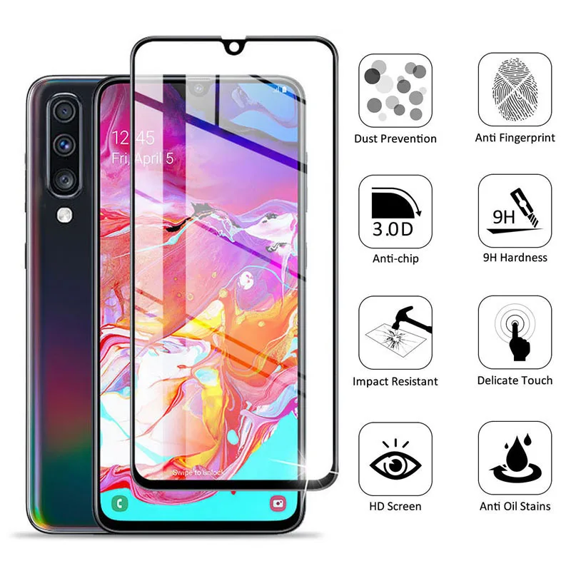 Закаленное стекло с полным покрытием для Samsung Galaxy A70 A60 A50...