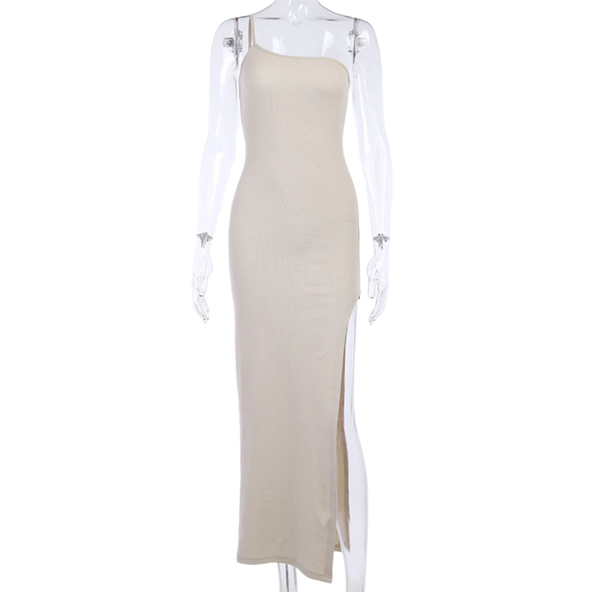 Женское сексуальное платье на одно плечо с разрезом, женское однотонное длинное платье без рукавов
