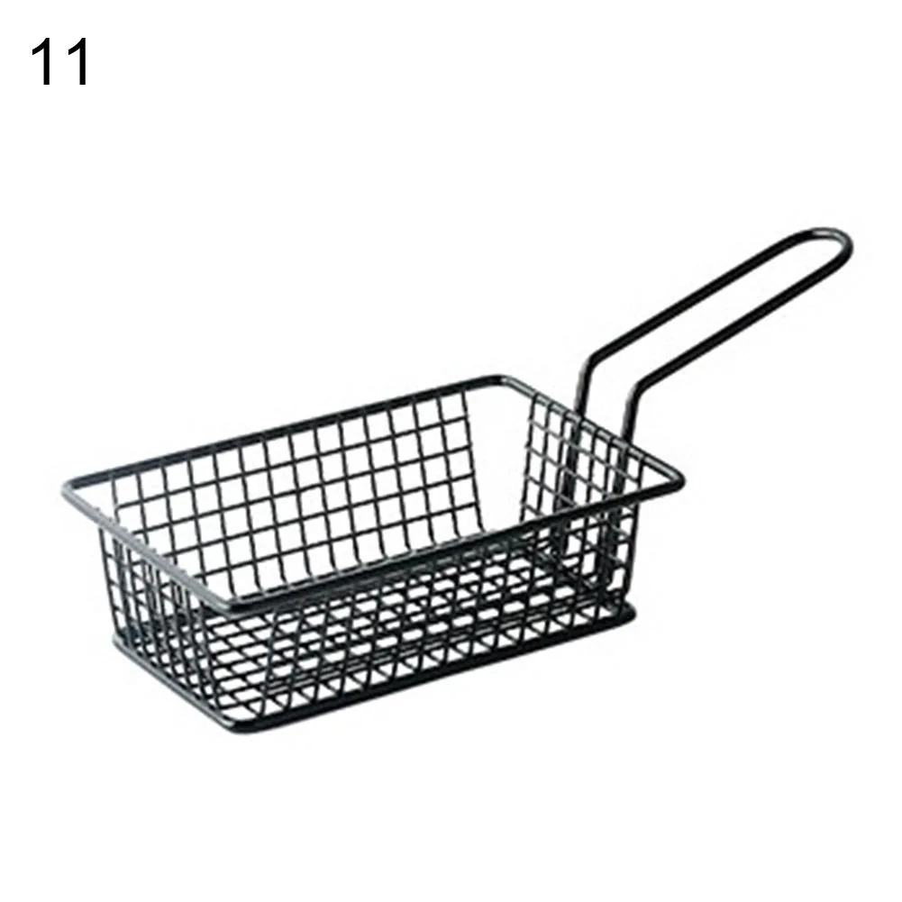 Корзина для картофеля фри из нержавеющей стали с защитой от ржавчины, ведро для еды, закуски, картофельные чипсы, столовая посуда с ручкой