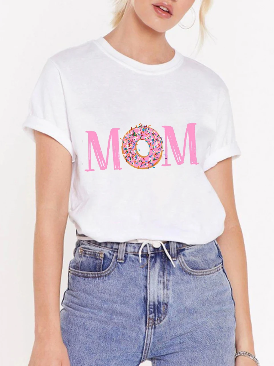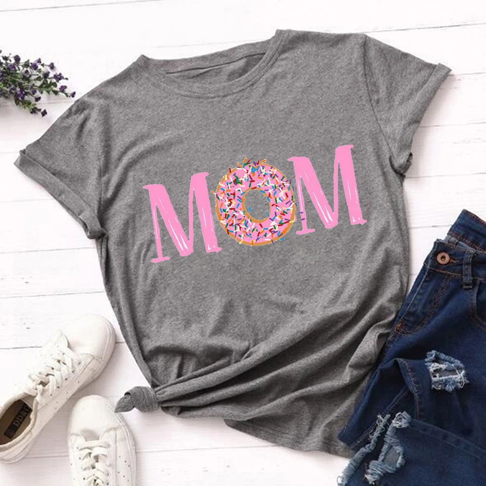 Женская футболка с принтом пончиков и круглым вырезом, с коротким рукавом