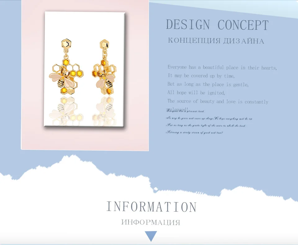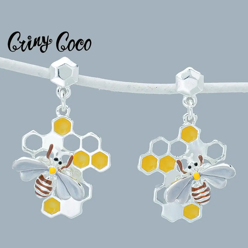 2020 новые модные висячие серьги с Пчелкой Позолоченные Сплав эмаль сотообразная форма Висячие серьги для женщин Свадебные ювелирные изделия Brincos