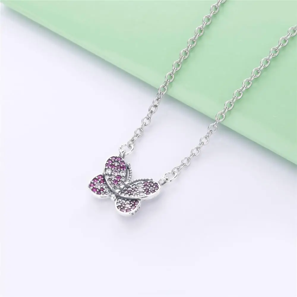 Ожерелье из стерлингового серебра 100% пробы 1:1 с буквой V-образной формы и бабочкой, ожерелье из четырех застежка в виде листа