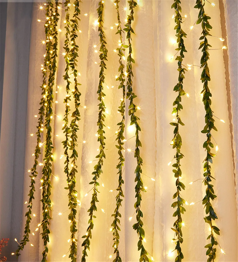 Feature 7Artificial Leaf Vine Curtain Icicle String Light