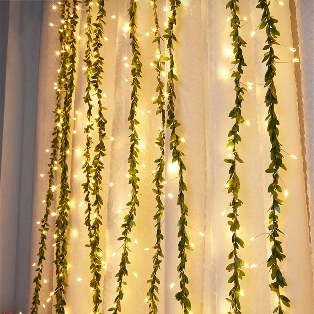 USB 8 режимов 3x1 м искусственные зеленые листья лоза Шторы строка светильник Рождественская светодиодная гирлянда «сосульки» светильник s для дома Свадебная вечеринка Декор