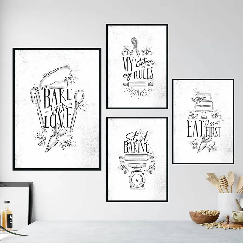 Черно-белый кулинарный с любовью кухонный художественная стена с ци...