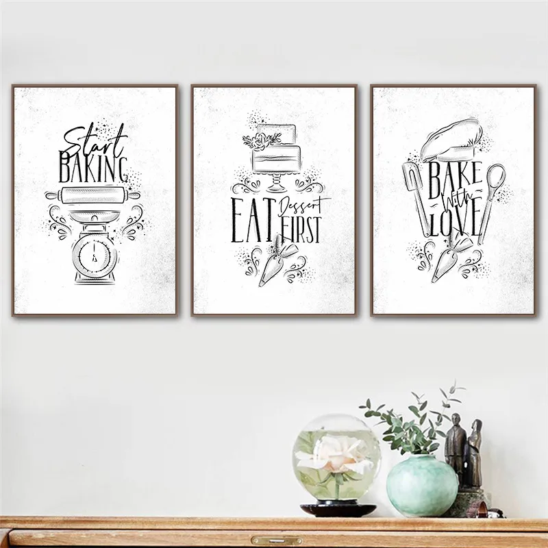 Настенная картина с надписью Nodic Cartoon Kitchen ware, холст, печать, печать с любовью, цитата, постер, Настенная картина для декора кухни, комнаты TB75