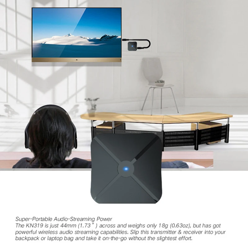 5. Супер-Портативное аудио-потоковое питаниеKN321 всего 44 мм (1,73 дюйма) и весит всего 18 г (0,63 унций), но имеет мощные возможности беспроводной потоковой передачи аудио. Вставьте этот передатчик и приемник в рюкзак или сумку для ноутбука и возьмите его на ходу без каких-либо усилий.