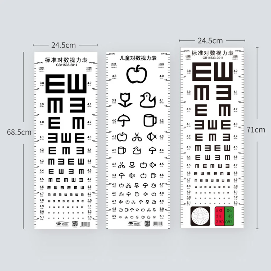 Описание:Эти очки изготовлены из прочного ПВХ-материала, водонепроницаемого и износостойкого.Дизайн с линейкой высоты по краям, это также может быть таблица измерения высоты.Таблица глаз snellen помогает измерять остроту зрения на расстоянии 3 или 5 метров от зрителя.Эти таблицы для глаз подходят для дома, школы и больницы.Спецификация:Материал: ПВХ