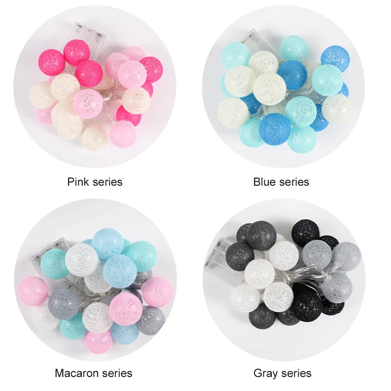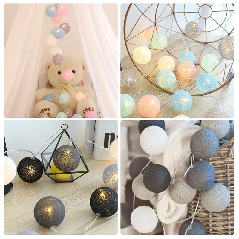 Гирлянда из 20 светодиодных хлопковых шариков, 2,2 м
