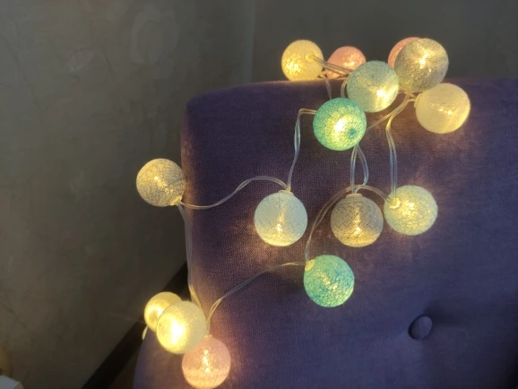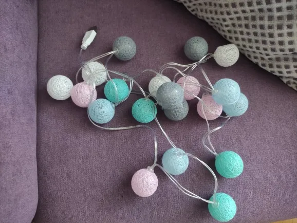 Гирлянда класс. Шарики маленькие, но очень миленькие. Взяла с юсби. Надо было на батарейках. Продавца и товар рекомендую