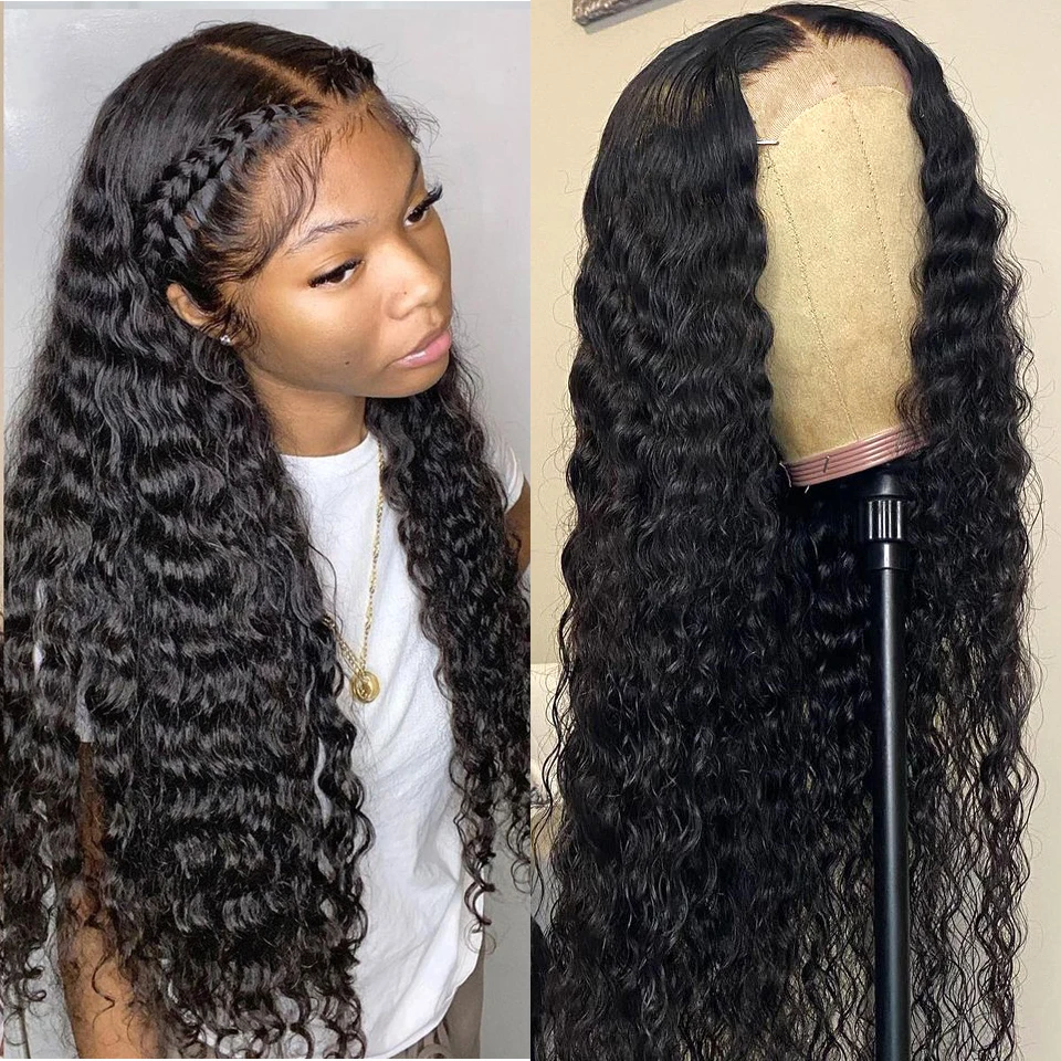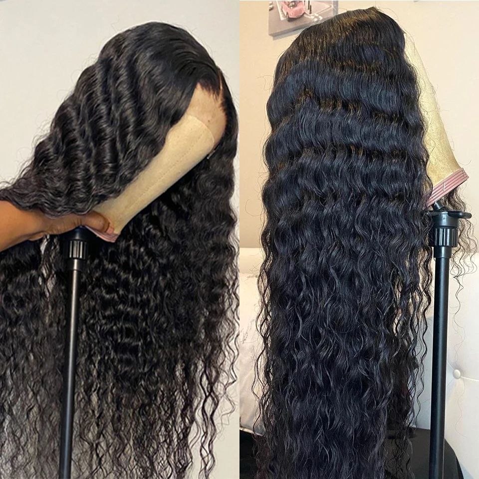 Дешевый парик с глубокой волной и фронтальной застежкой, парики с глубокой кудрявой кружевной передней частью из человеческих волос, T-образные влажные и волнистые HD прозрачные передние парики на сетке