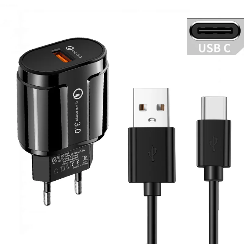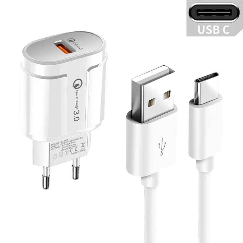 Быстрая зарядка 3,0 быстрое зарядное устройство для телефона штепсельная вилка ЕС для Xiaomi 10T 9T 10 Pro Lite A2 A3 Redmi 9A 9C 8A Type-C USB кабель зарядное устройство адаптер