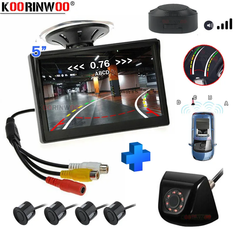 Koorinwoo беспроводные автомобильные парковочные датчики, 4 дюйма, обратный Парктроник, чернаябелая траектория, движущаяся парковочная камера с экраном, видеорегистратор