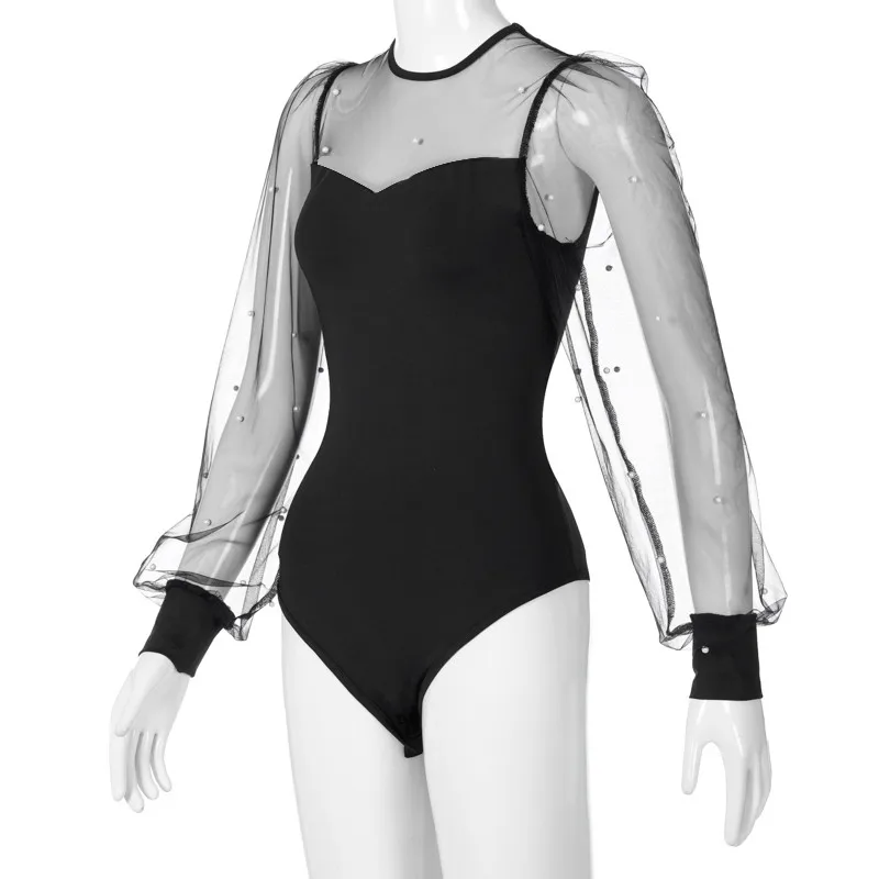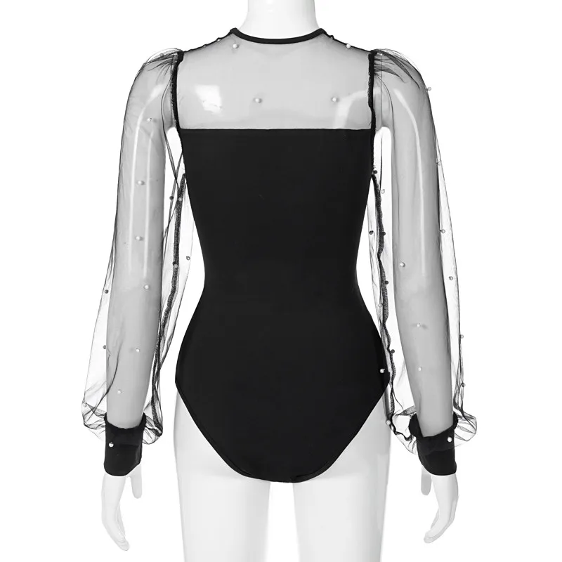 Женское боди с жемчужными вставками kayojuta, сетчатый трико с длин...