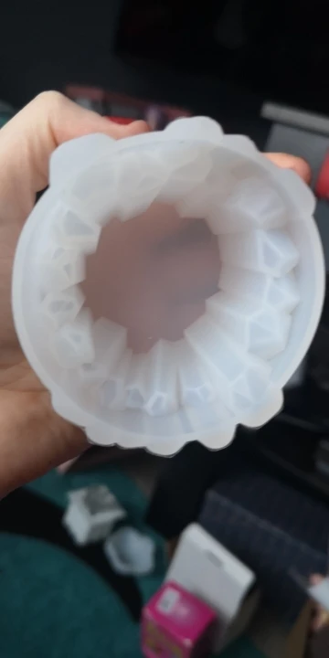 Я купил его для изготовления свечей (как показано на фото), и невозможно удалить свечу, не разбивая ее на мелкие кусочки воска. Так, не для свечей. Тем не менее, я уверен, что форма будет работать для эпоксидной смолы, которая, скорее всего, соответствует фото (с маленькой свечкой в середине).