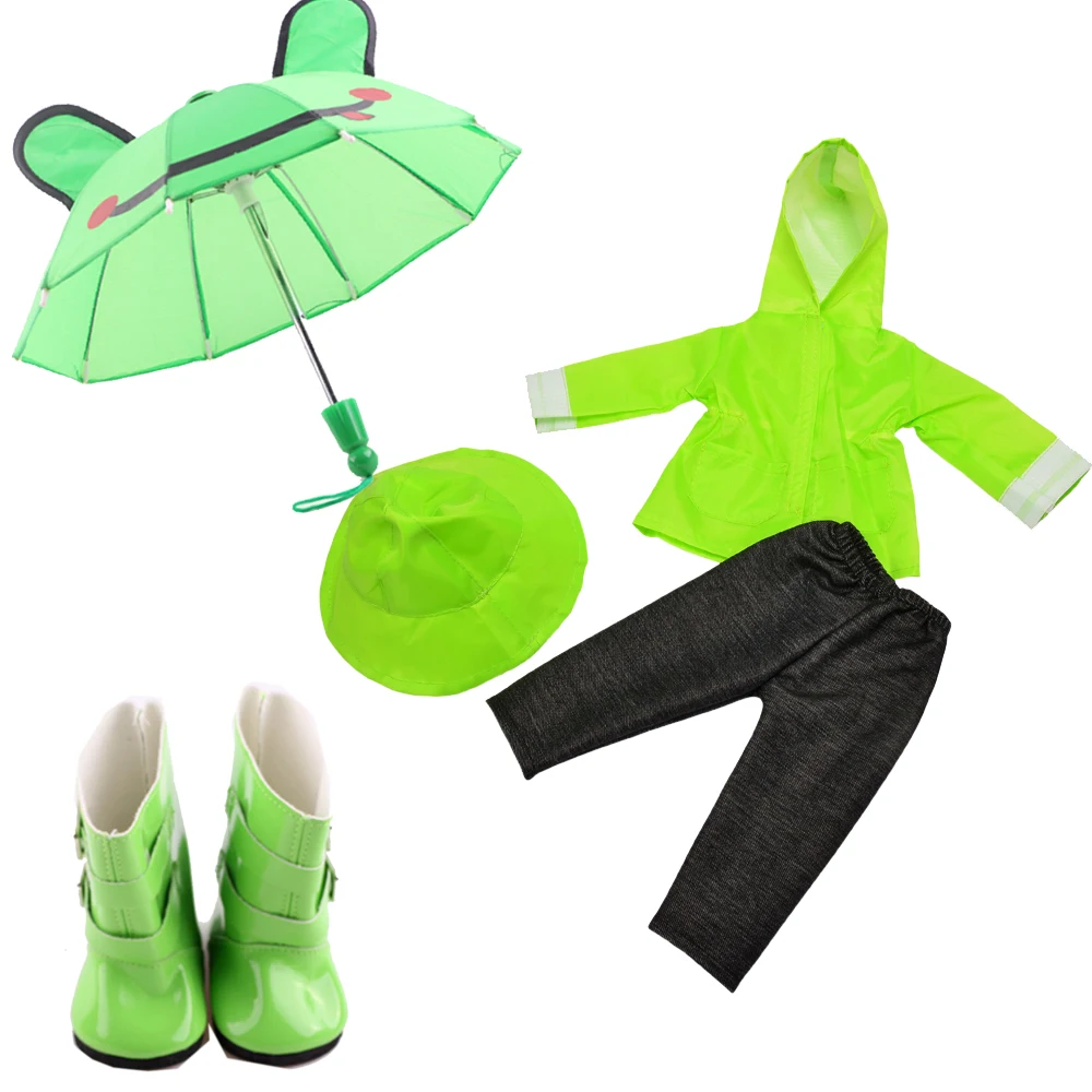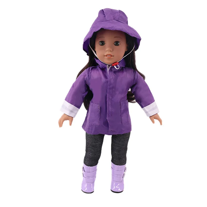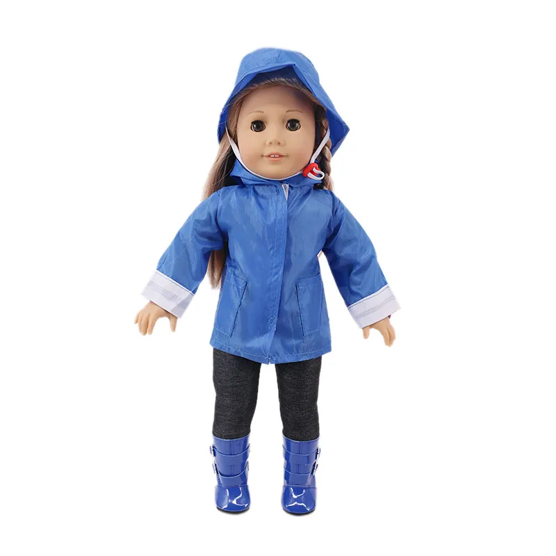 Кукольная одежда для дождливой погоды Набор плащ ботинки из PU искусственного материала (PU) аксессуары подходят 18 дюймов с капюшонами в американском и 43 см для ухода за ребенком для мам Одежда для новорожденных Девочка Кукла нашего поколения девочек игрушка