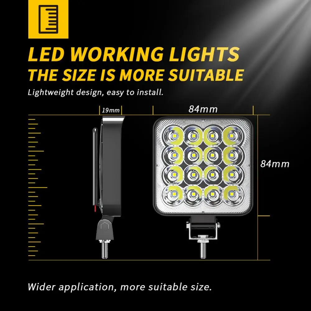 Светодиодный рабочий квадратный светильник 48 Вт, супер яркий дневной свет, светильник для автомобилей, мотоциклов, грузовиков, автомобилей
