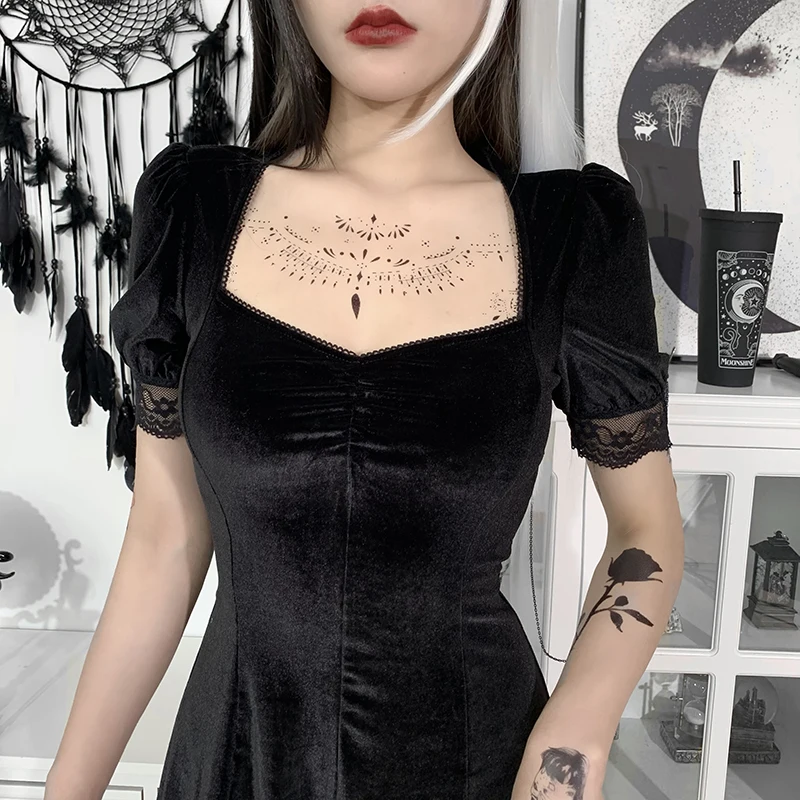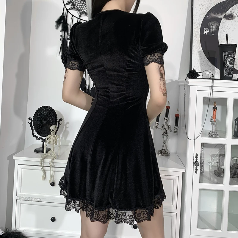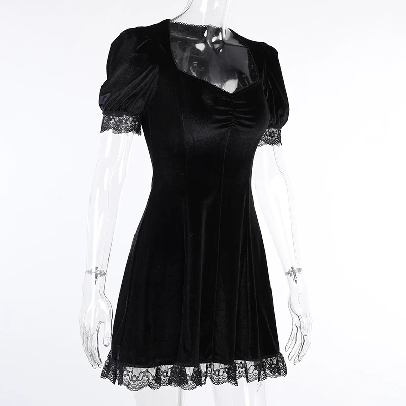 Винтажное кружевное платье InsGoth, Черное мини-платье с высокой талией, элегантное ТРАПЕЦИЕВИДНОЕ ПЛАТЬЕ С Коротким Рукавом, Клубная одежда для вечерние