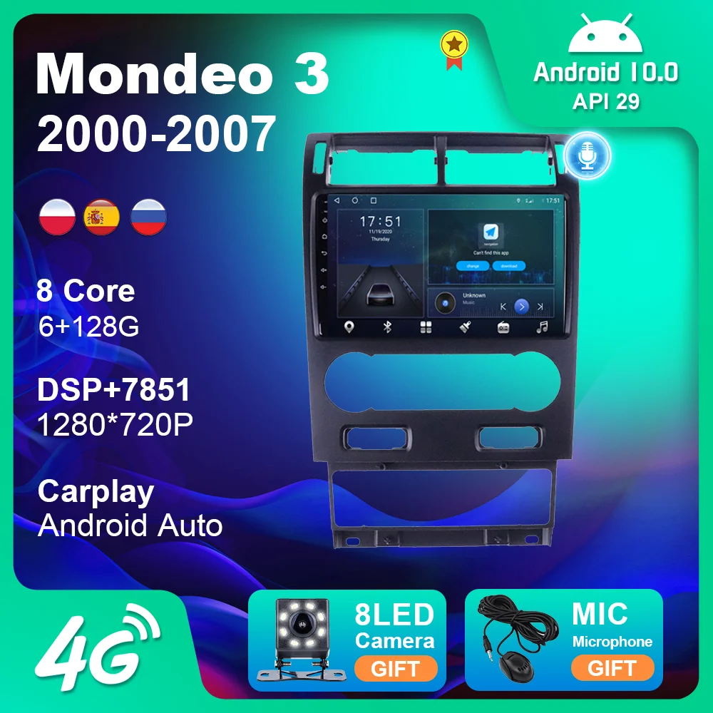 Автомагнитола для Ford Mondeo 3 2000 2001 2003 2007 Android, Автомагнитола для Carplay, стерео, мультимедийный видеоплеер, навигация GPS, аудио, разъем 2din