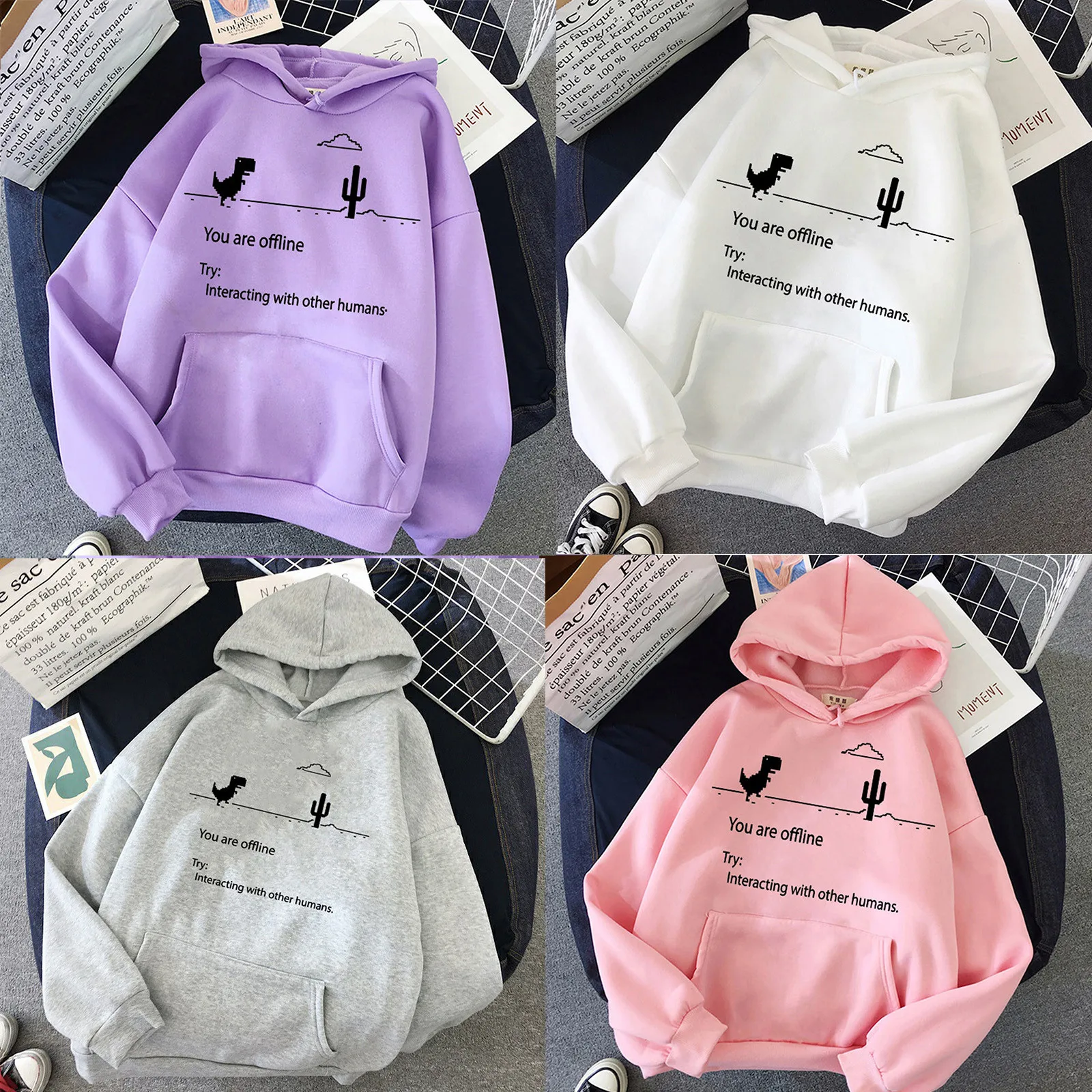 Толстовка женская с капюшоном и принтом динозавра, пуловеры оверсай...