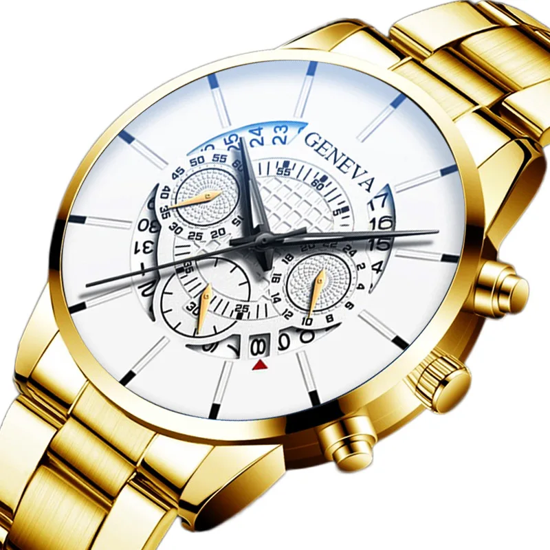 Часы мужские с календарем, модные повседневные кварцевые из нержавеющей стали