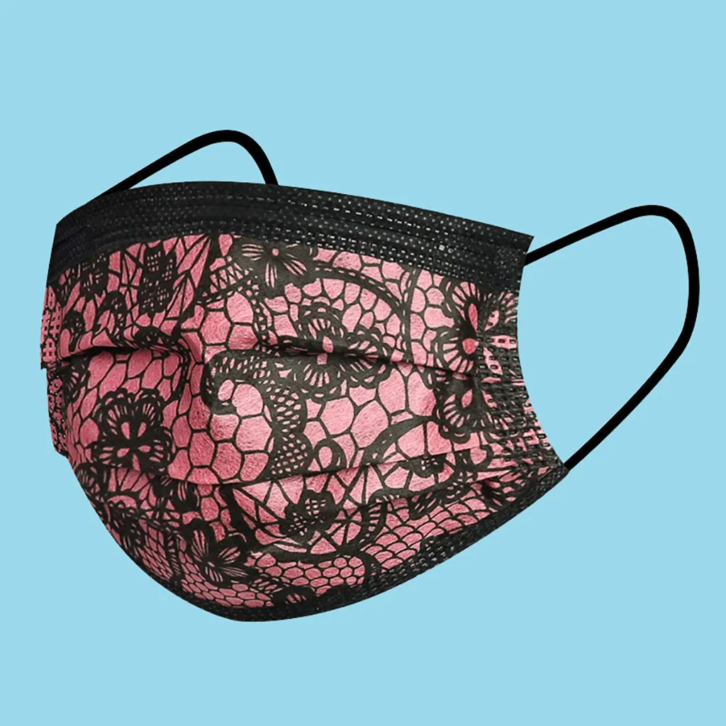 Маска для лица одноразовая кружевная трехслойная, 9 цветов, 50 шт.