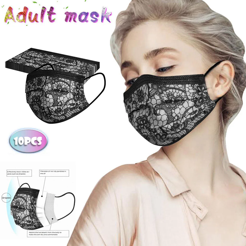 10 шт взрослые модные кружевные одноразовые защитные трехслойные дышащие маски для лица