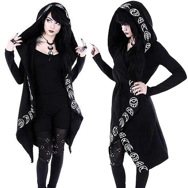 Женский длинный кардиган с капюшоном, пальто с длинным рукавом и принтом Луны в стиле панк, модель B5 на зиму