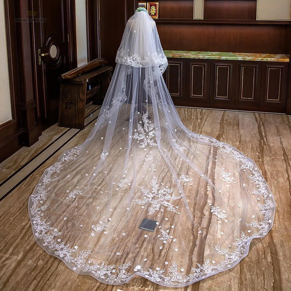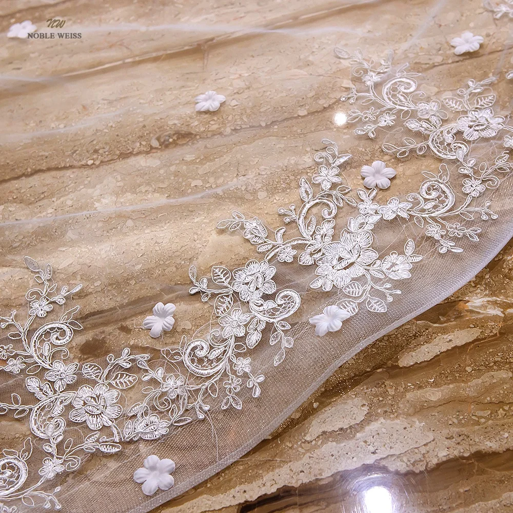 Длинная свадебная фата с гребнем, Тюлевая Фата с двухслойной аппликацией и кружевной каймой, аксессуары для невесты, 3 м * 4 м