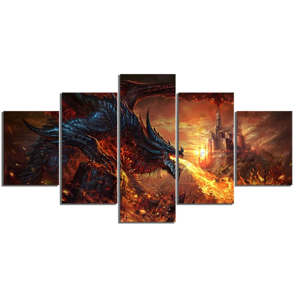 Фэнтези Художественные картины Огненный Дракон 5 шт. искусство на холсте искусство HD печать живопись на холсте для гостиной