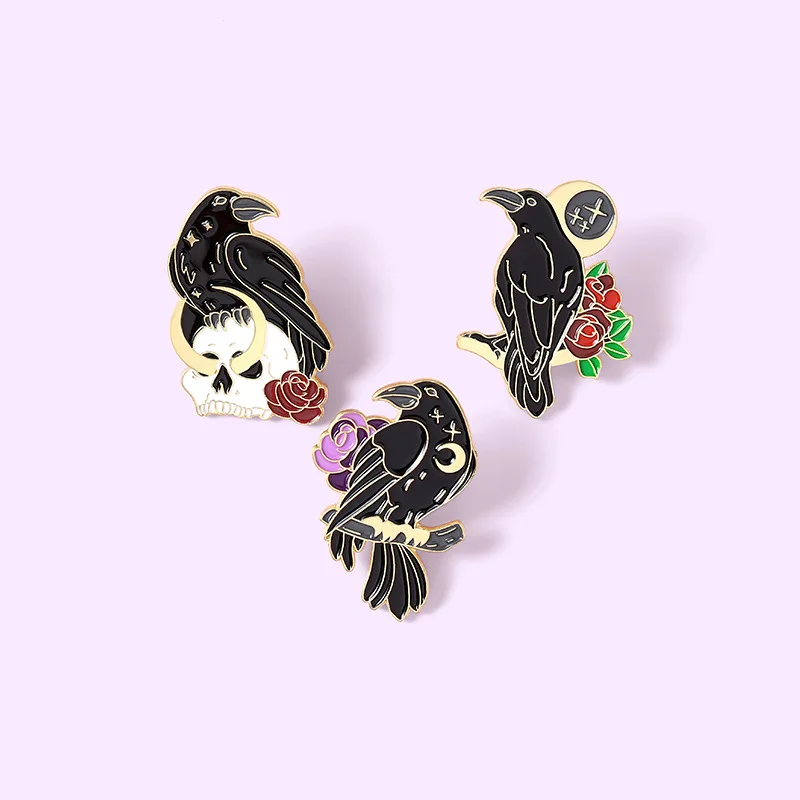 Эмалированные булавки в готическом стиле с черной вороной, птицей, ...