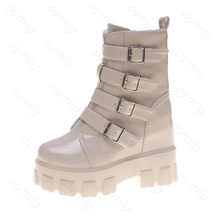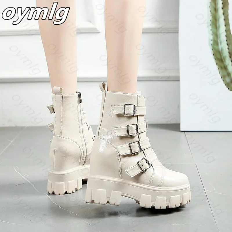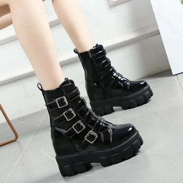 Женские ботинки на платформе, черные ботинки в готическом стиле, до середины икры, на молнии, с пряжкой и ремешком