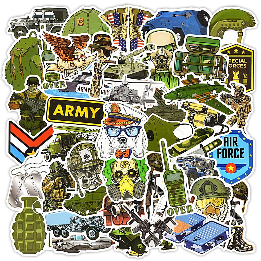 50 шт., военные наклейки на танк, игрушки для мальчиков, крутые Мультяшные аниме наклейки для ноутбука, телефона, холодильника, багажа, мото, автомобильные наклейки, детский подарок