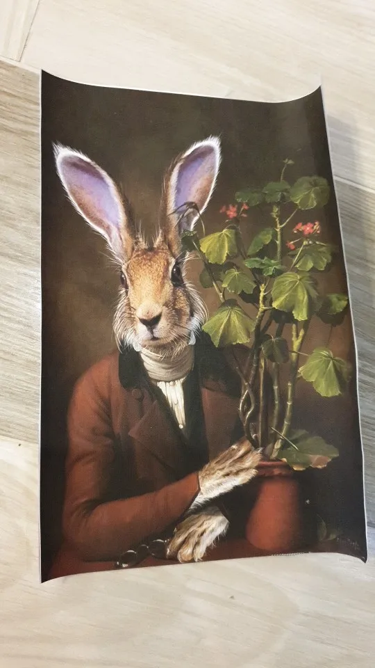 Постер в скандинавском стиле с изображением головы животного кролика, винтажные постеры с человеческим телом, настенные картины для гостиной, настенная Картина на холсте без рамки
