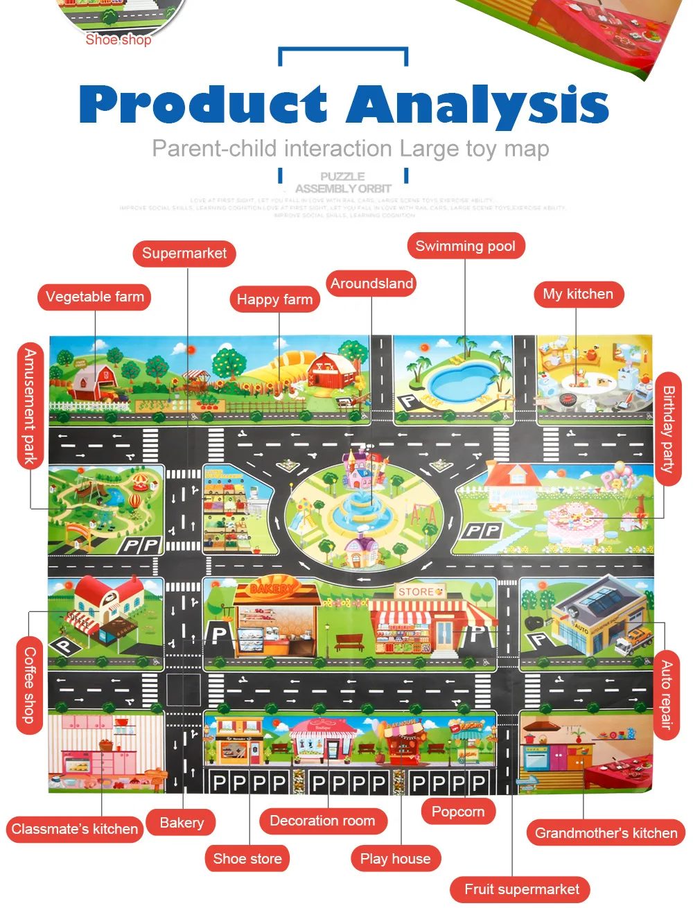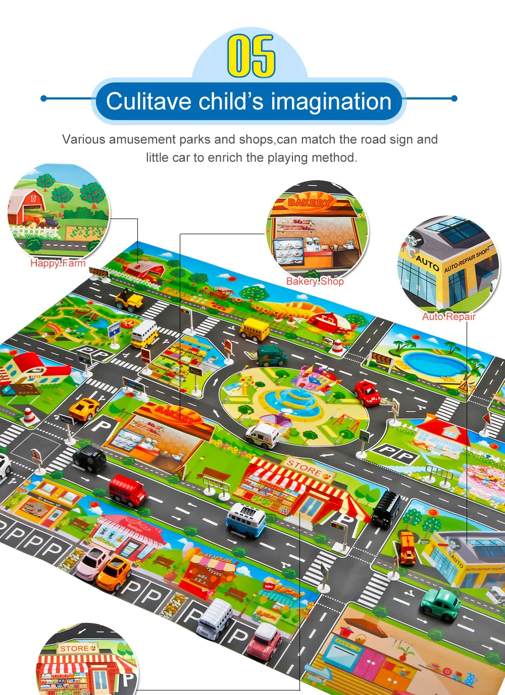 Дорожный Коврик для детей, Детский игровой коврик, Дорожная карта, игрушки для мальчиков и девочек, мультяшный городской коврик, игрушки для мальчиков, детский игровой коврик